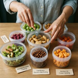 Чтобы не перекормить семью (и не превратить перекусы в «второй ужин»), задайте правила: фиксированные окна...