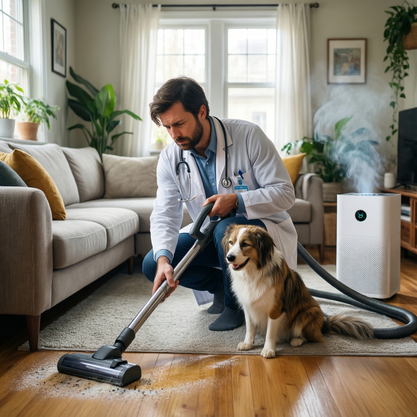 6. Закрепи эффект ежедневным режимом. Делай минимум каждый день: чистая спальня, короткая влажная уборка "горячих точек", стирка/сушка текстиля по графику. Это отвечает на вопрос "как уменьшить аллергию на собак дома" не разовыми мерами, а стабильным снижением аллергенной пыли.
