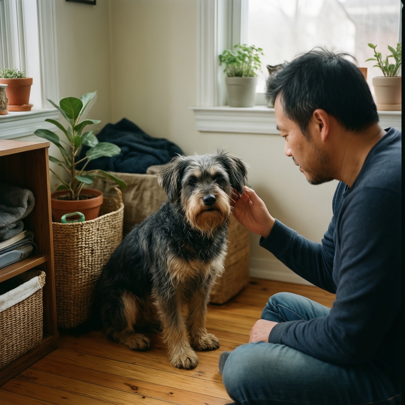 - Ошибка: брать на руки, чтобы "успокоить". Если животное вырывается/замирает, вы усиливаете тревогу; вместо этого дайте дистанцию и укрытие.