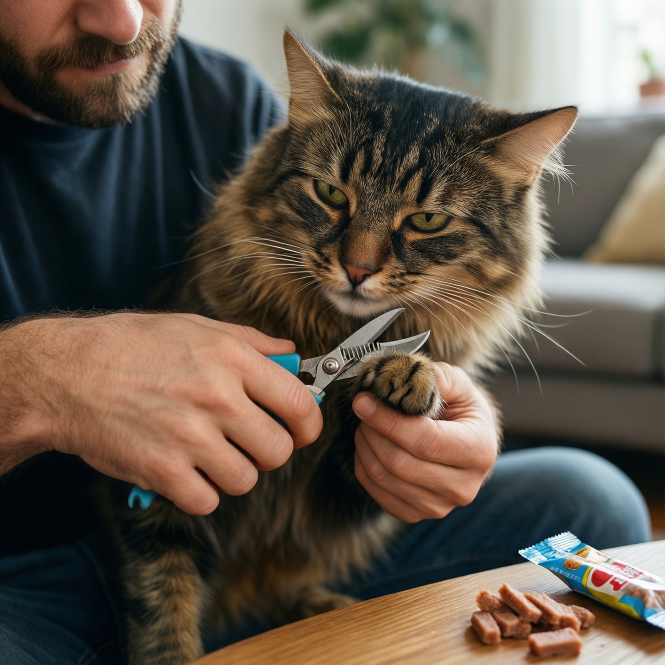 • Поведенческая работа с кинологом/фелинологом: полезна, если "подстричь когти кошке" возможно только с борьбой, и вы хотите решить проблему через десенсибилизацию, а не через удержание.