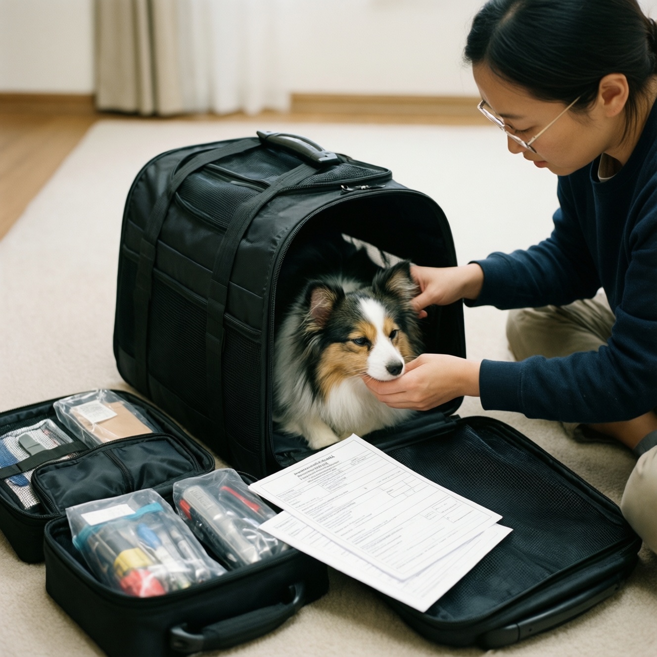 - Соберите дорожный набор: вода, корм, пелёнки, средства уборки, аптечка, поводок/шлейка.